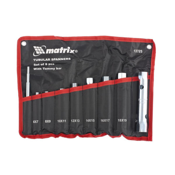 A készlet 6 oldalas, 6 x 7, 8 x 9, 10 x 11, 12 x 13, 14 x 15, 16 x 17, 18 x 19, 20 x 22 és egy hajtó-kulcsot tartalmaz.