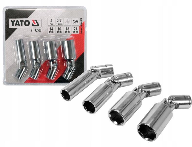 TOYA Gyertya dugókulcs 14, 16, 18, 21mm 3/8" Csuklóval Kpl. 4DB Yato YT-38520 (YT-38520)ALLEGRO